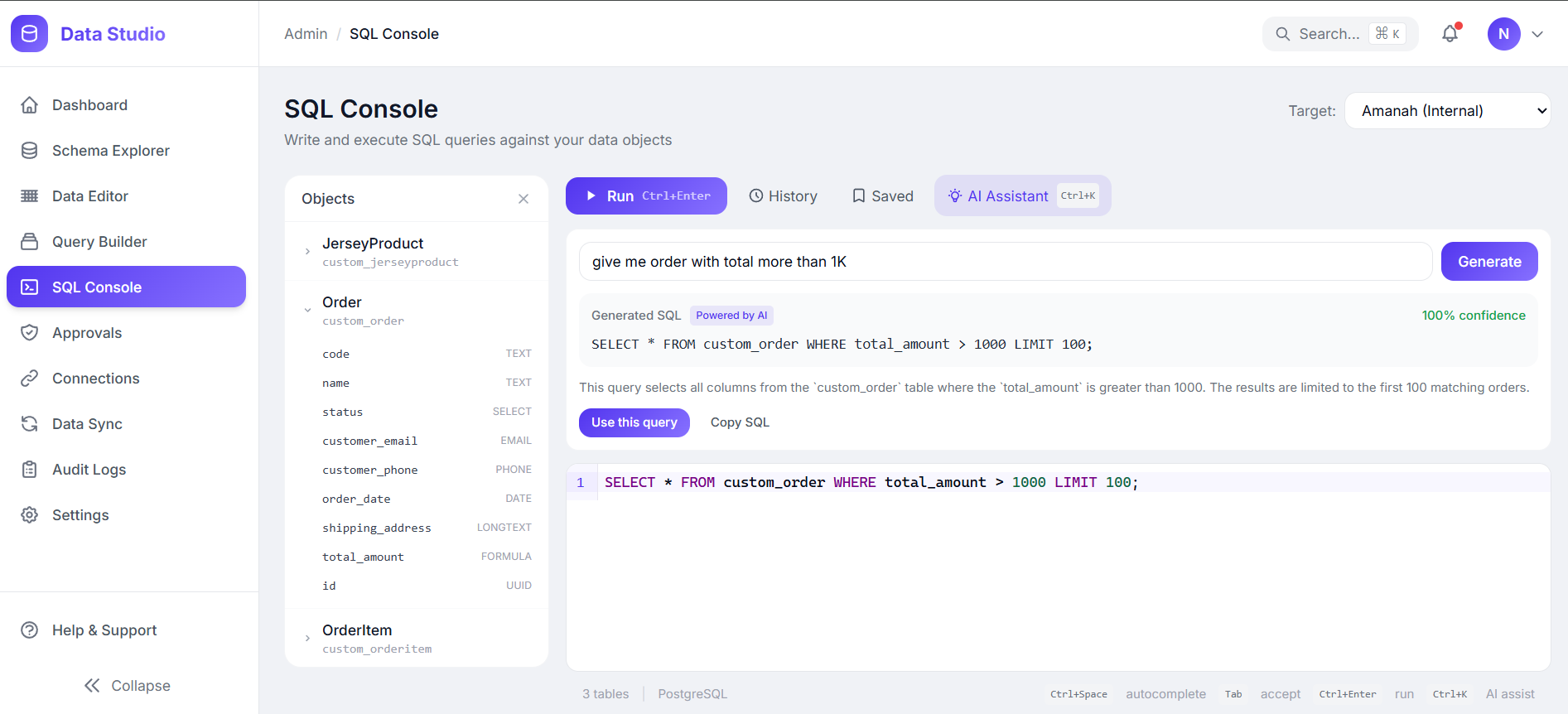 - DataStudio - AI Natural Language to SQL platform with two-way sync